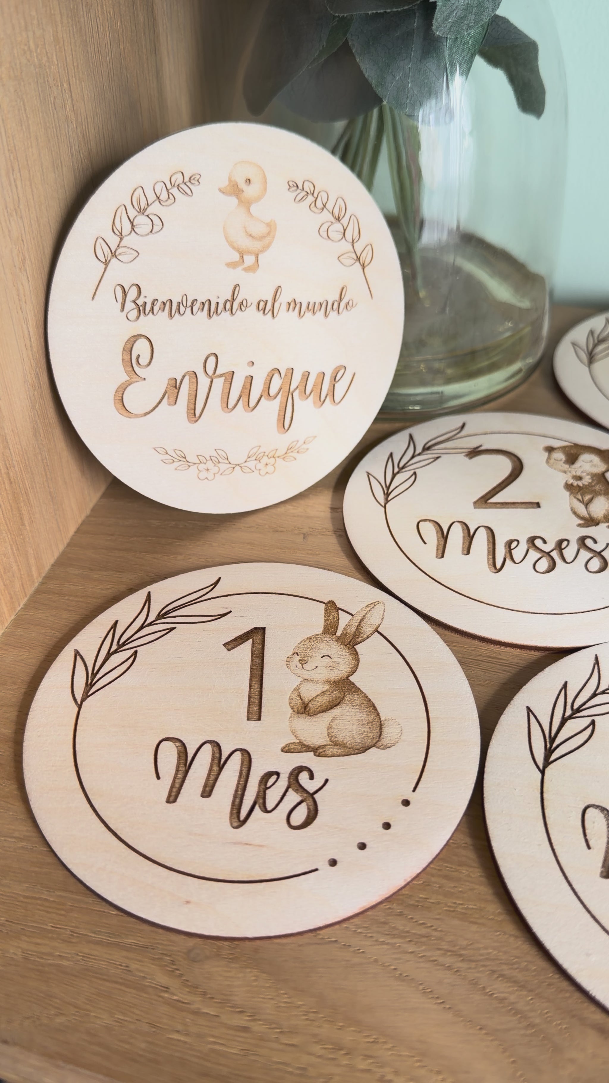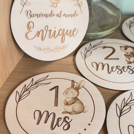 Precioso pack de 13 placas cumple meses para tu bebé. Bienvenida, 1-11 meses y el año. 10 cm de diametro.